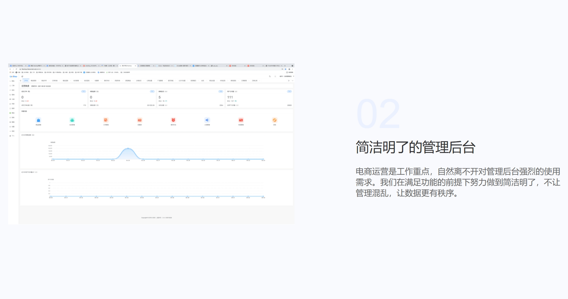 適用于B2C、單商戶、自營商城場景。完美契合私域流量變現閉環交易使用。 系統擁有豐富的營銷玩法,強大的分銷能力,支持電子面單和小程序直播等功能